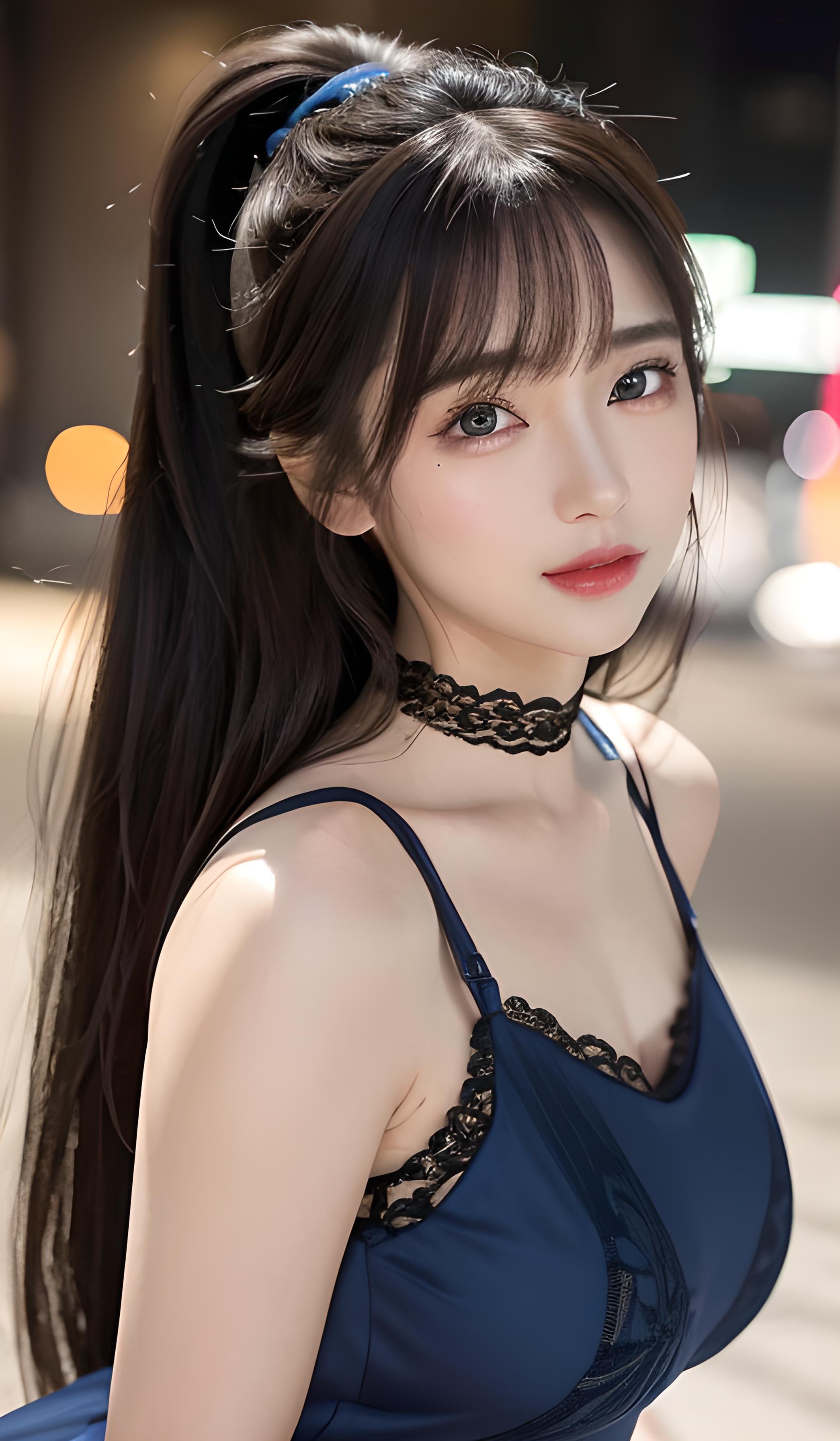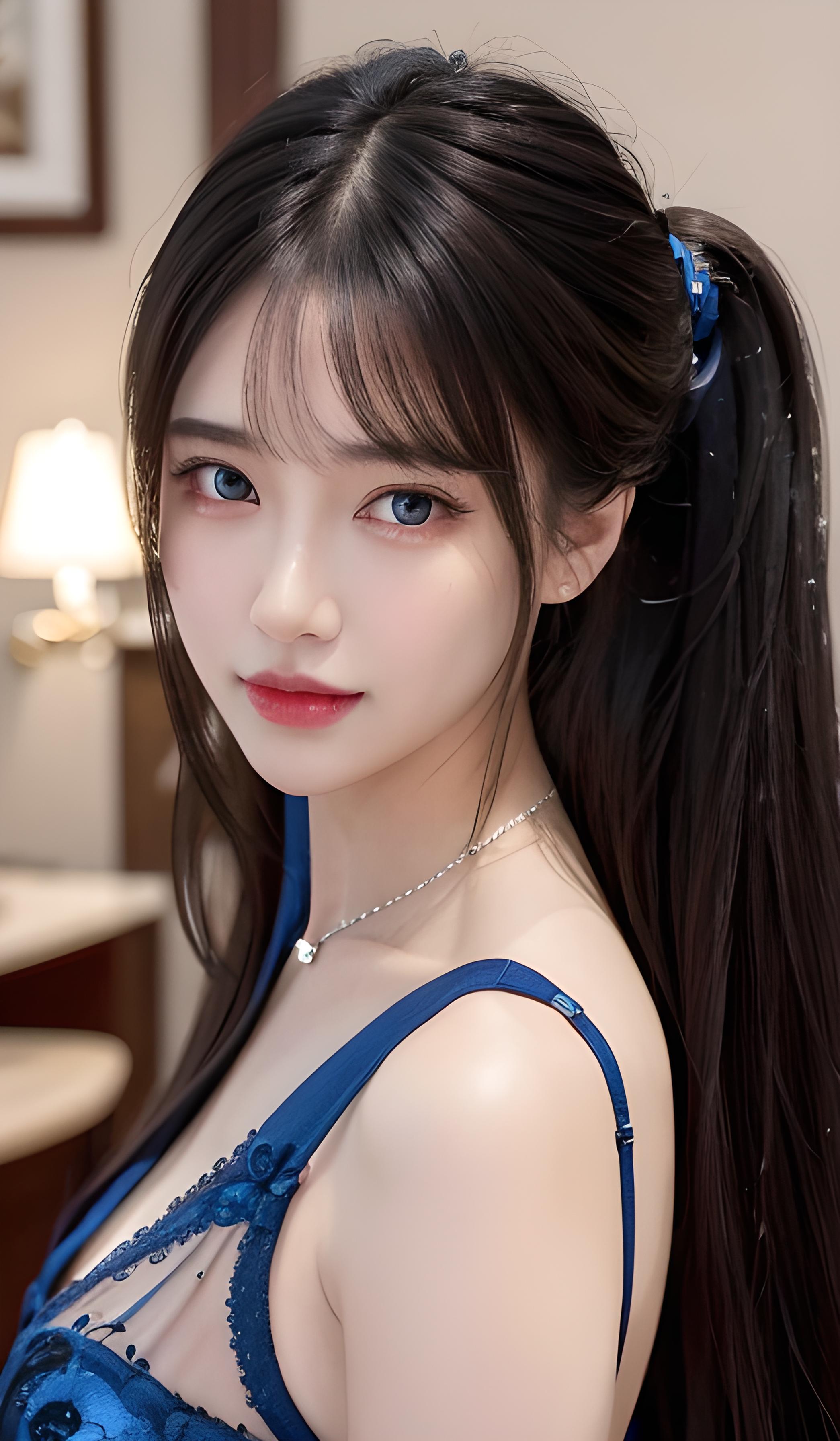 蓝色蕾丝美女 气质美女 马尾辫