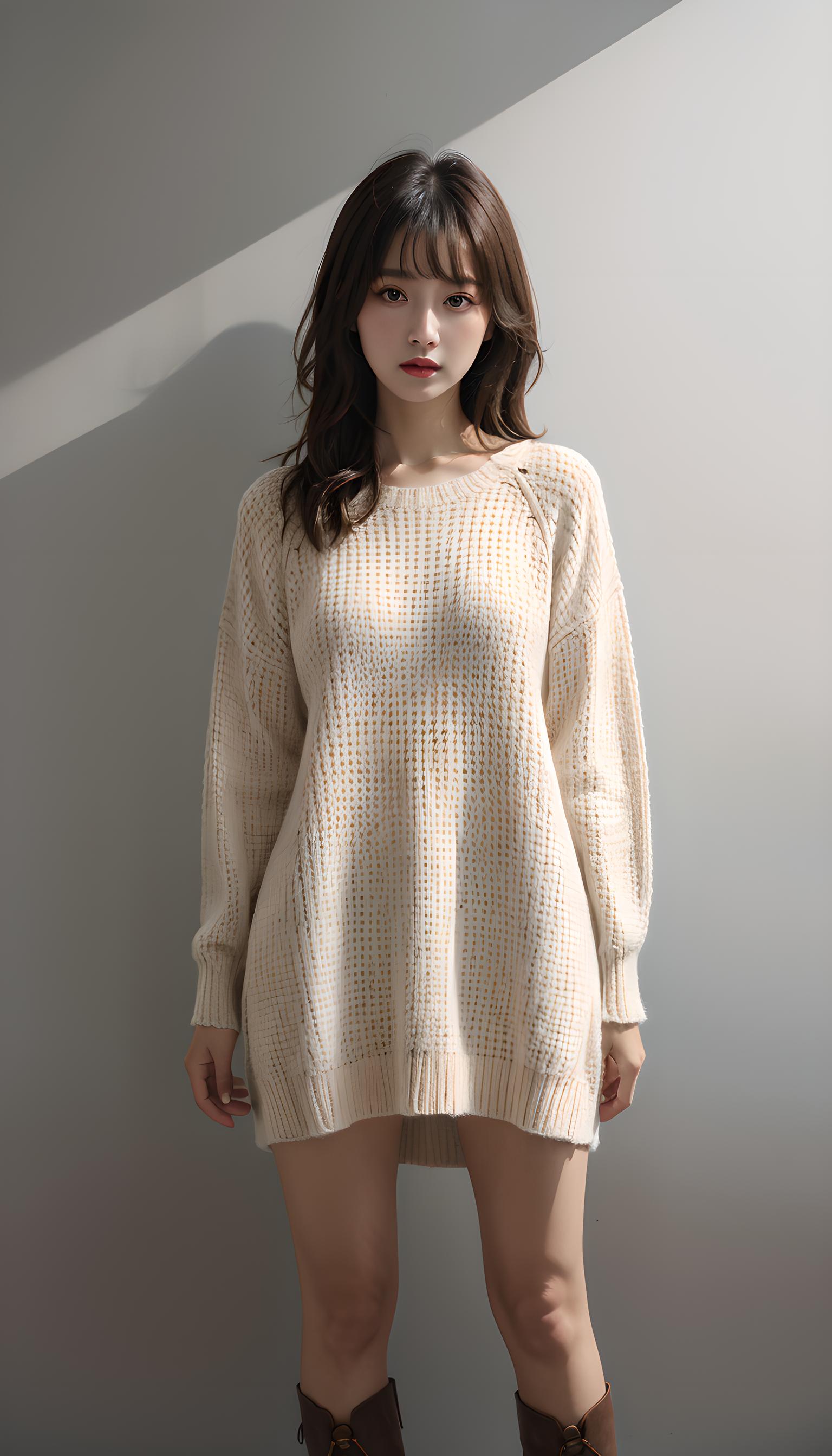 Aran 毛衣束腰外衣可作为迷你连衣裙搭配长筒靴穿着