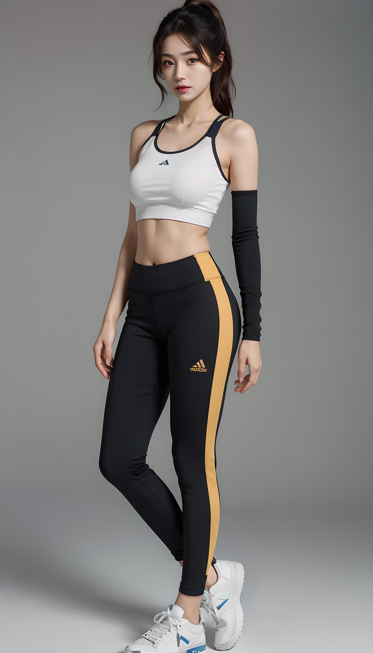 超高分辨率超详细,(1个年轻漂亮的女孩单人:1.1),简单背景瑜伽裤运动胸围运动鞋傲人身材