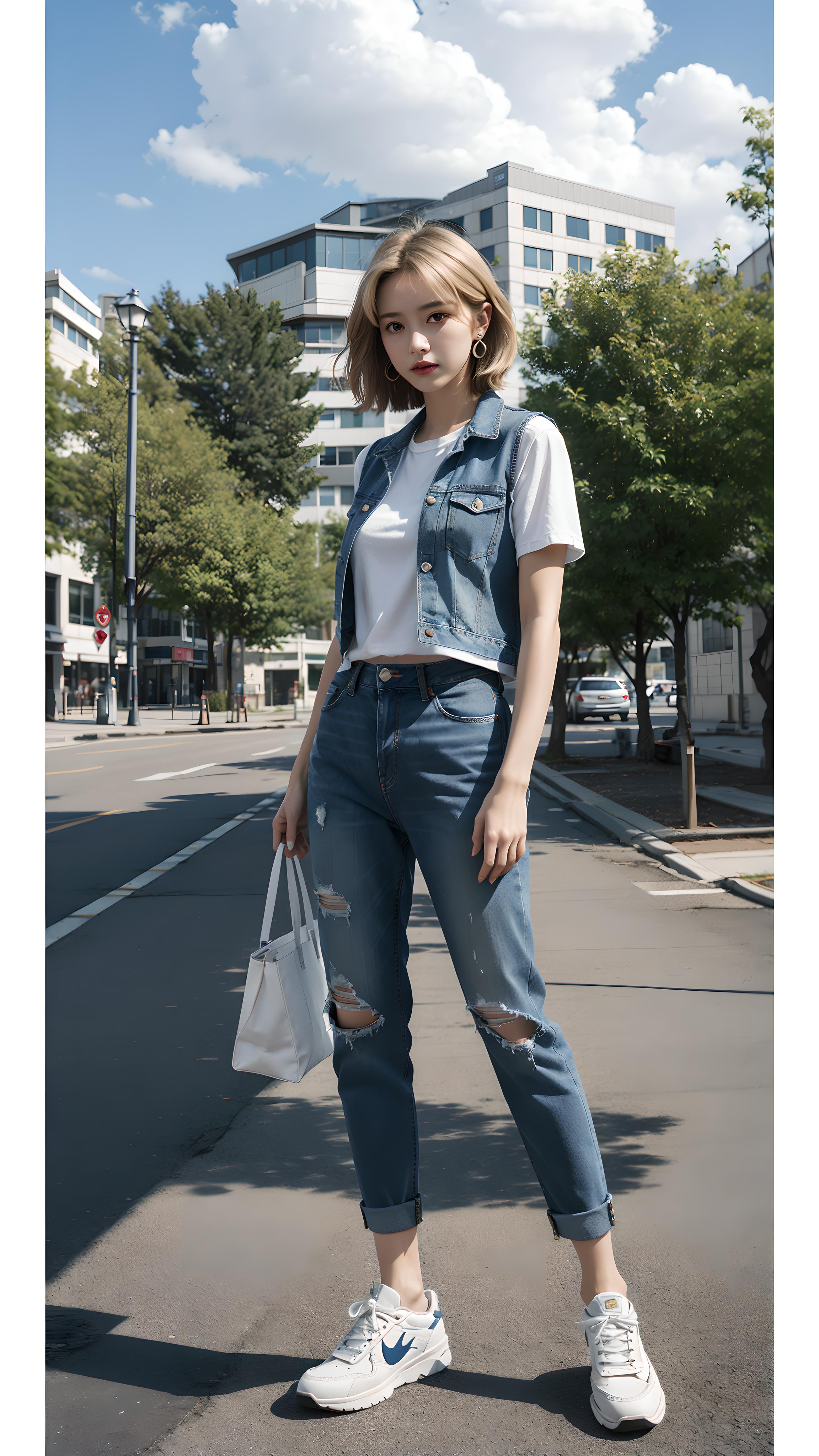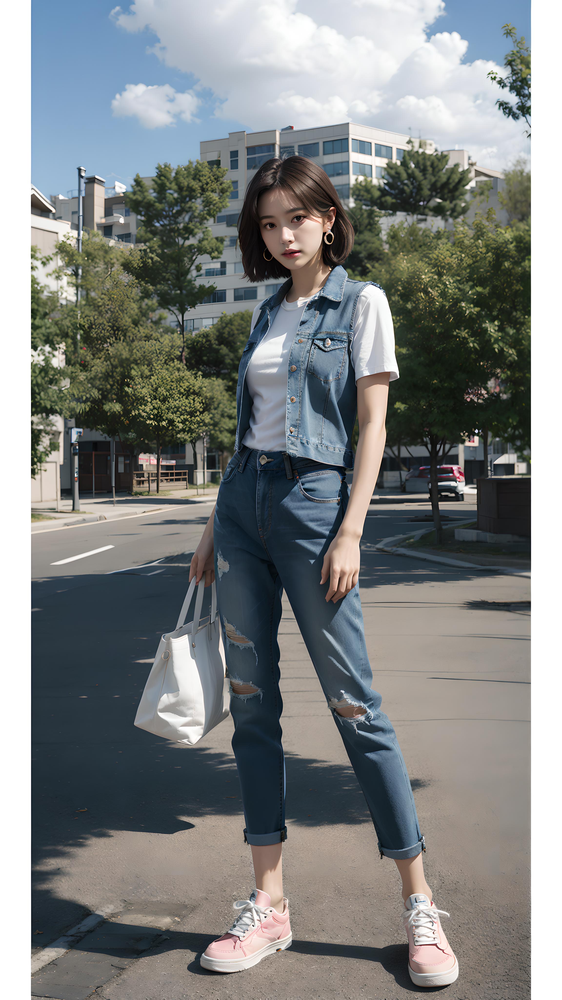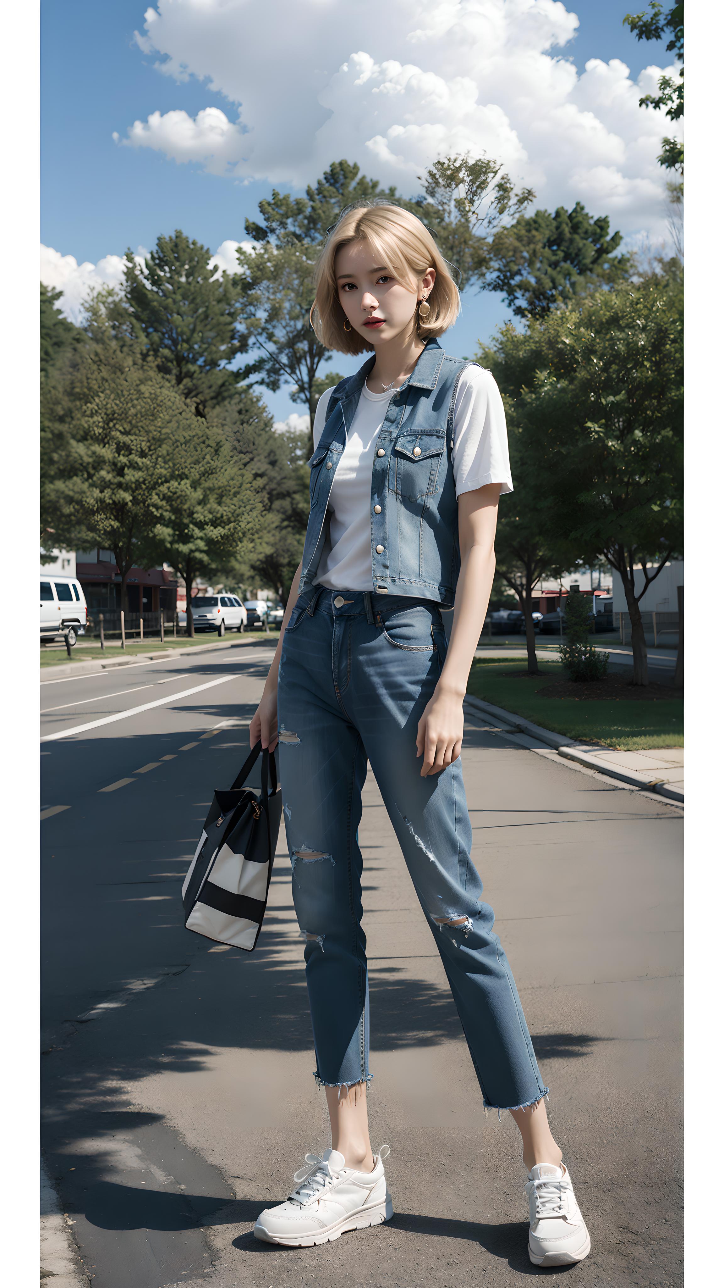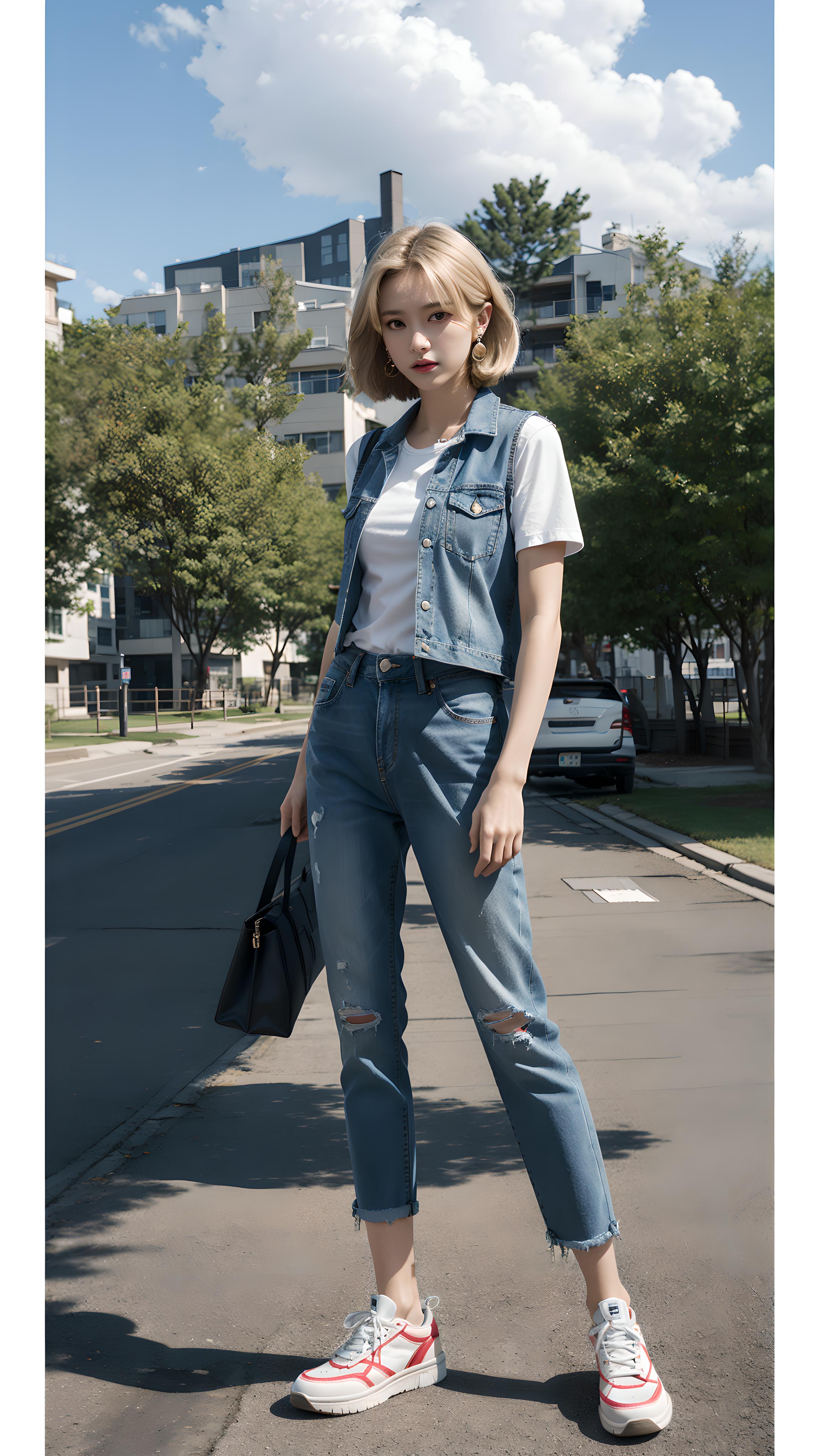 穿牛仔套装的少女