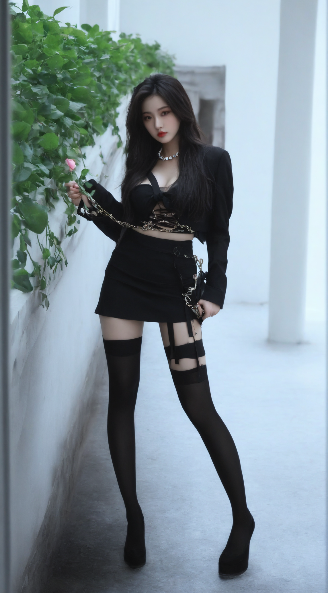 最好画质,8k,精致细节,绝美性感包臀裙御姐,长睫毛,大眼睛有卧蚕,腮红,水润粉唇,精致妆容,(面部特写)((全身照)),(修长的双腿),白嫩肌肤,(((穿着白色职业装,丰满大胸前凸后翘,黑色包臀开叉短裙))),锁骨,项链,凌乱长发,丰满胸部,