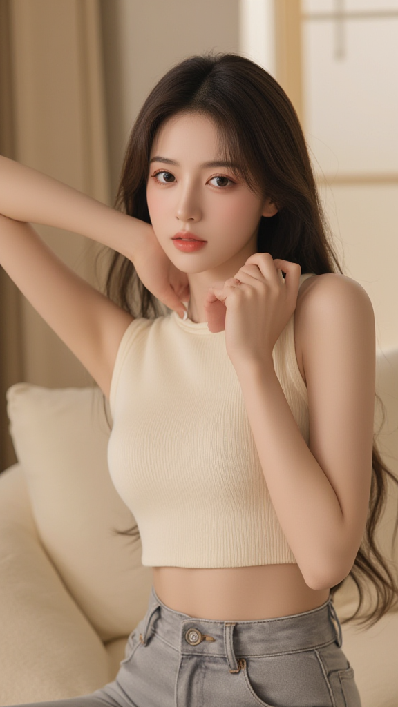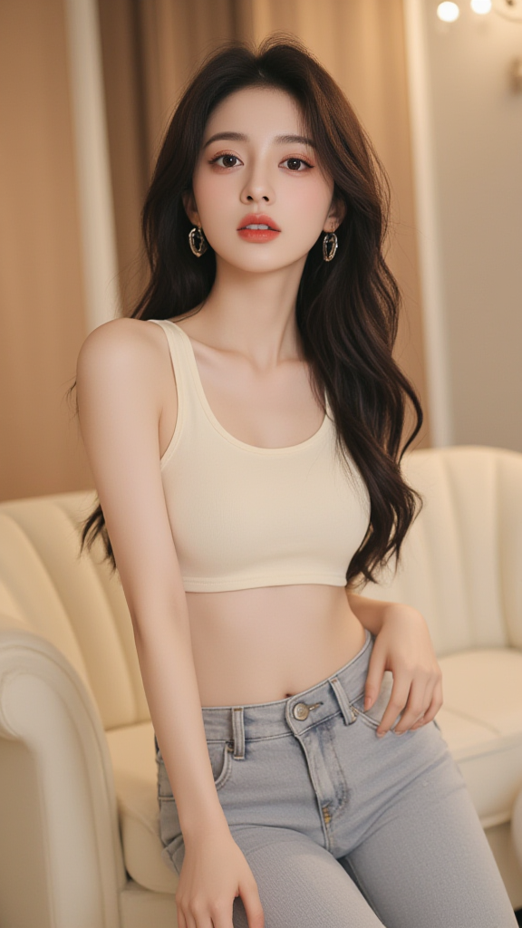 灰色牛仔裤女孩