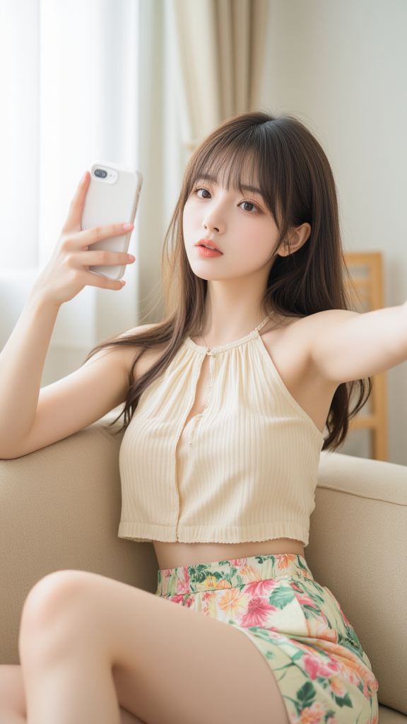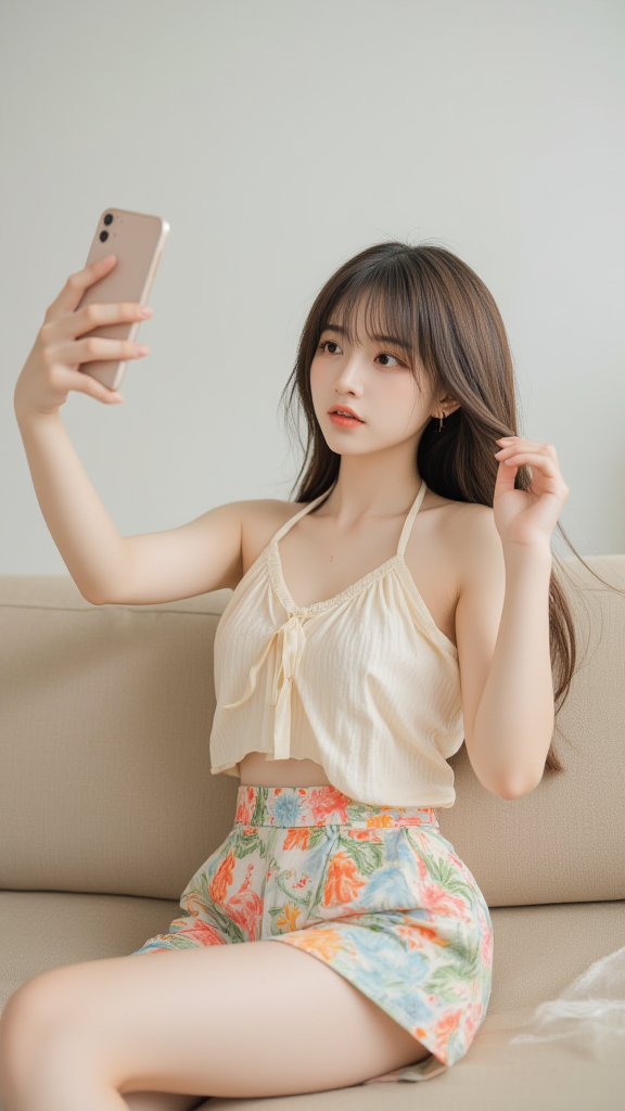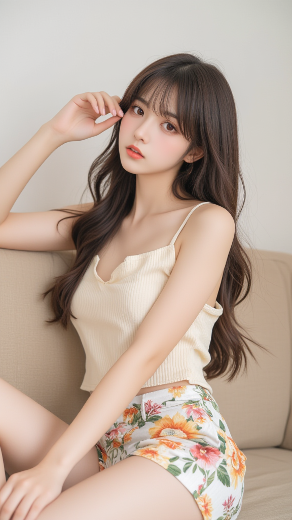 碎花短裤女孩