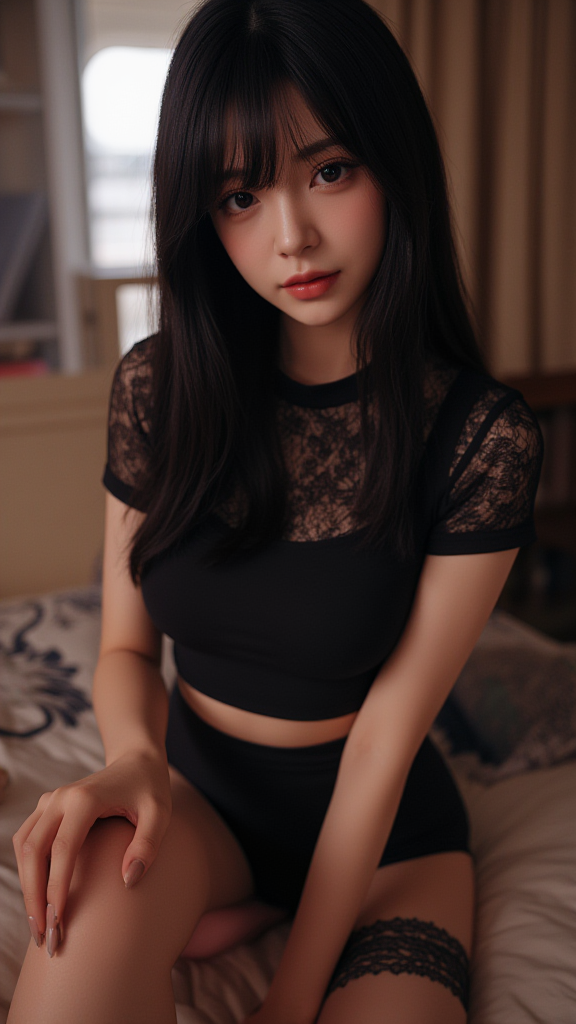 黑皮蕾丝T恤女孩