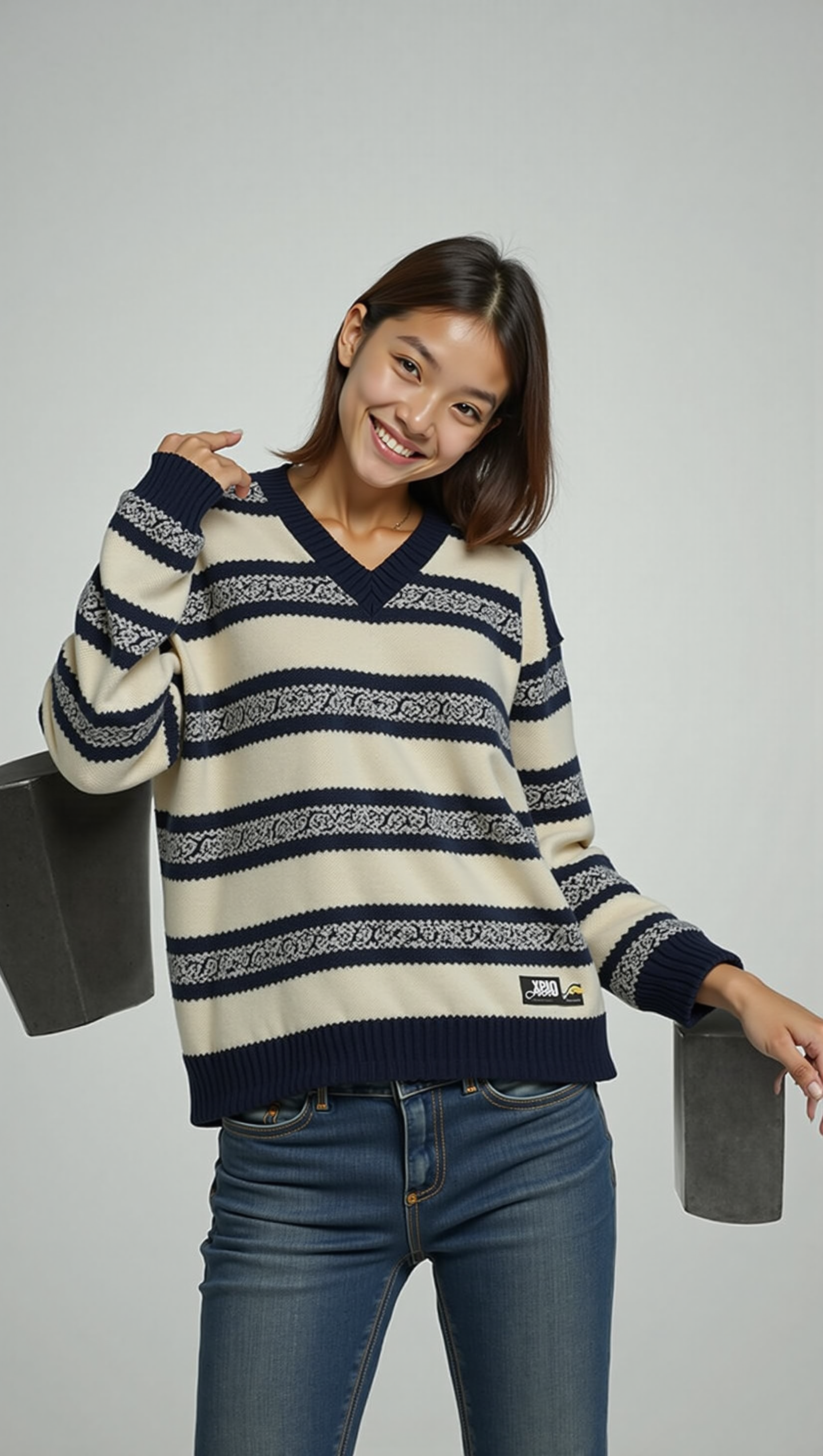 不改变主体细节和构图的情况下整体风格 清新、活力、积极向上带有一定的科技感如果适用场景偏向网络、科技类),以吸引观众注意力并传达新人积极融入的氛围 画面主体:一个年轻、有活力的女性形象面带灿烂的笑容眼神中透露出兴奋与期待穿着时尚、简洁的服装休闲的卫衣搭配牛仔裤卫衣上印着科技行业可穿带有科技元素女子站在画面中心偏左的位置身体微微前倾做出一个欢迎或准备出发的姿势一只手向前伸展做出邀请或前进的手势另一只手自然下垂或放在腰间 背景: 使用渐变的明亮色彩作为背景从左下角的浅蓝色逐渐过渡到右上角的淡紫色营造出梦幻、充满希望的氛围在背景中添加一些抽象的线条和光斑线条可以呈流动状从新人身后向四周散开光斑则随机分布在背景中大小不一增加画面的动感和科技感 文字信息 主标题:在新人上方偏右的位置用大号、醒目的字体显示“新上线”四个字字体可以选择富有现代感和科技感的无衬线字体颜色为亮黄色或橙色与背景形成鲜明对比突出主题文字呈动态效果轻微的发光或闪烁效果增强视觉吸引力 副标题或描述语: 在主标题下方用稍小一号的字体添加一句简短的描述语“开启新征程!”字体颜色可以选择白色或浅灰色与主标题形成层次感