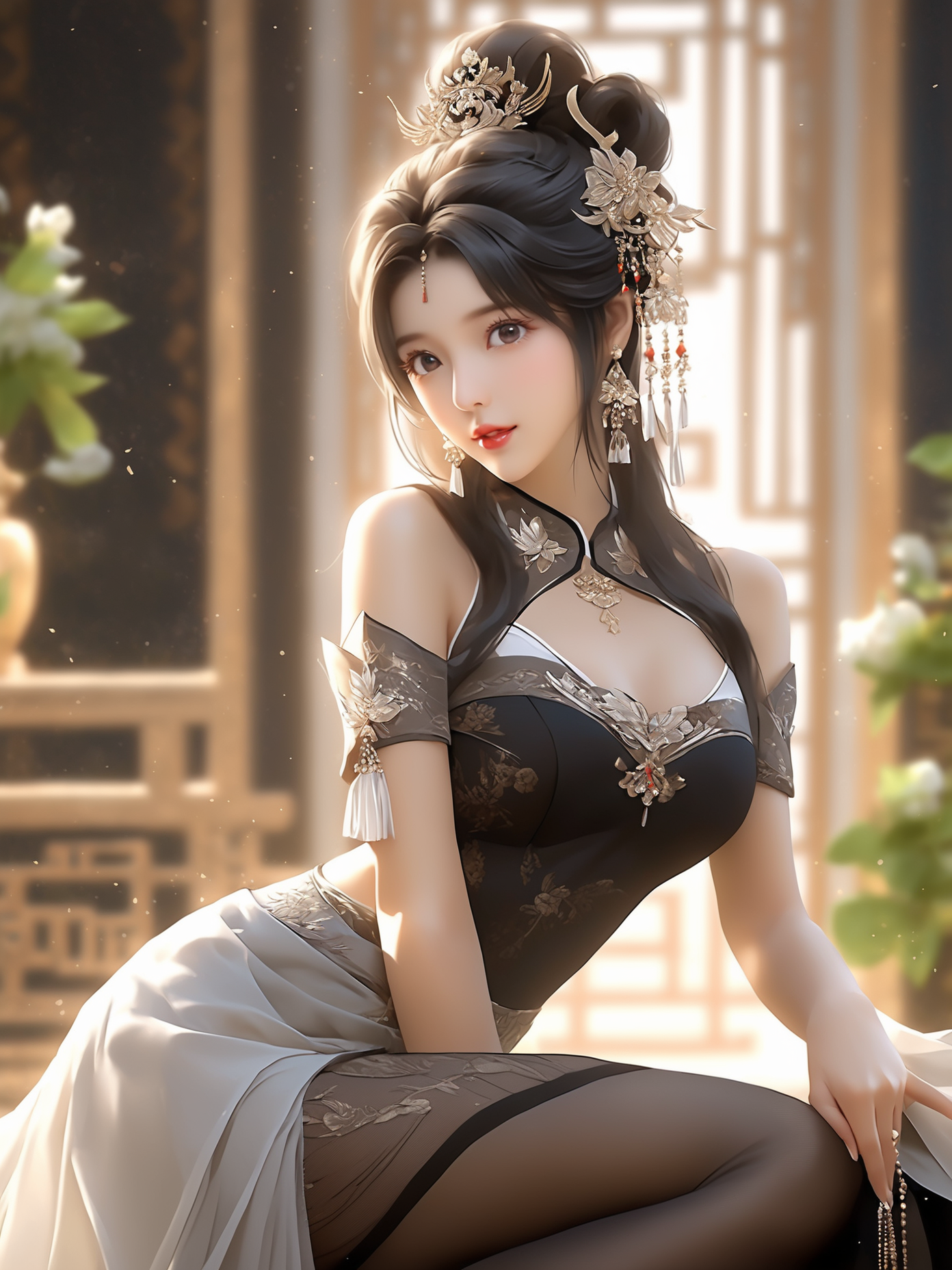 【国漫女神】古风大小姐装扮低胸丝绸襦裙搭配黑色微透裤袜眼神温柔大家闺秀气质唯美光效适合视频号