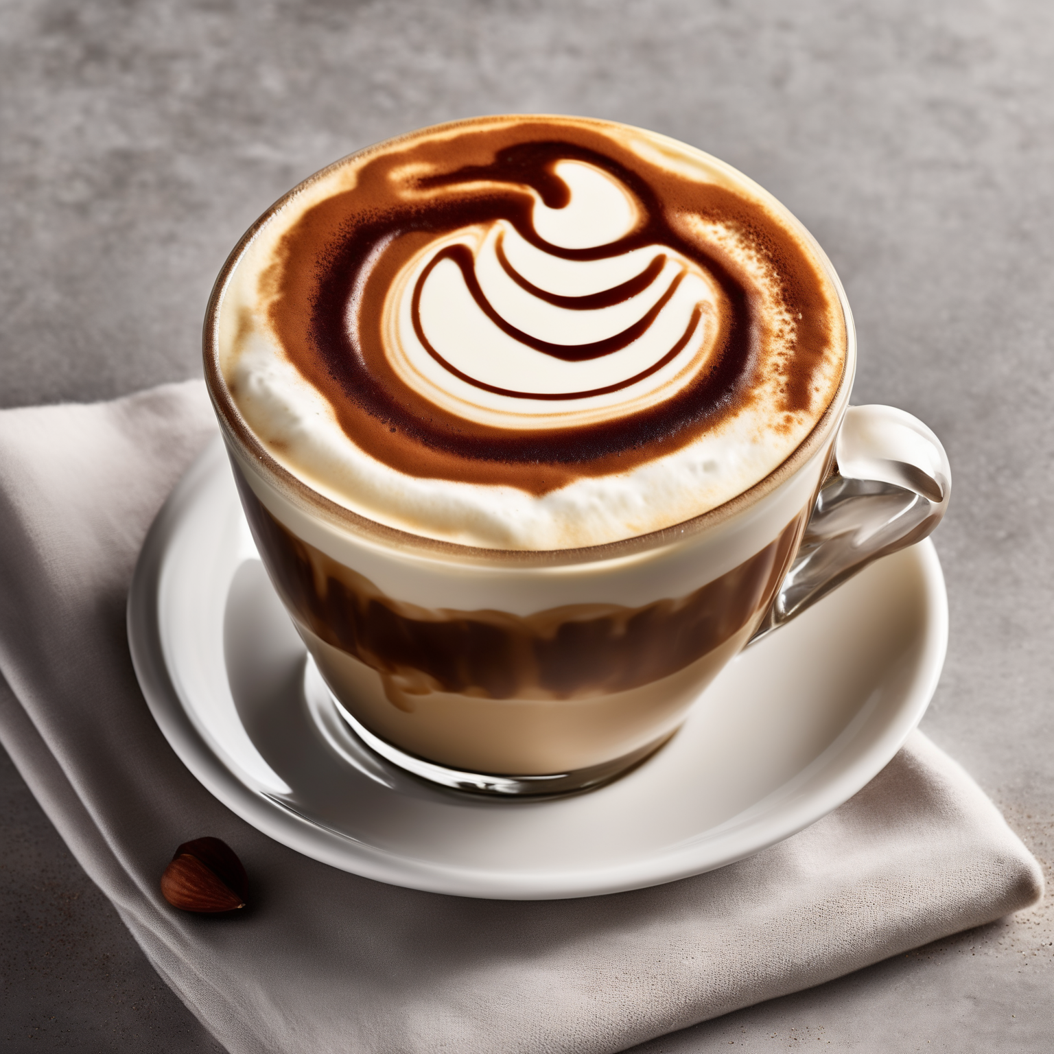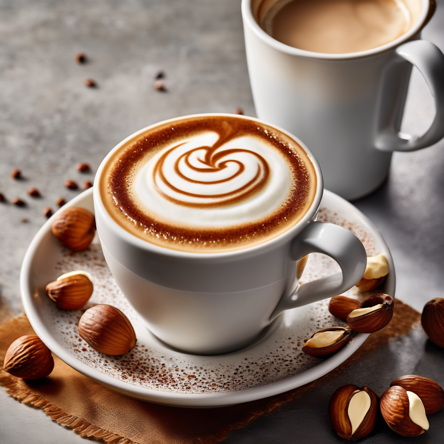 带有榛果和牛奶的拿铁,有拉花装饰,高清美食图片