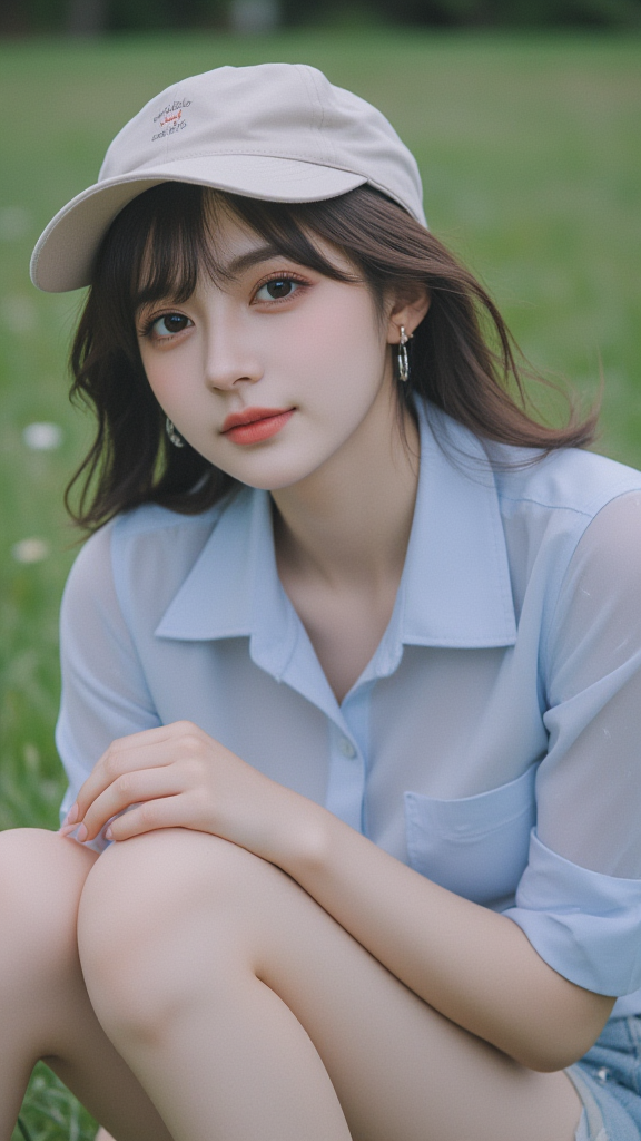 户外草地上的女孩