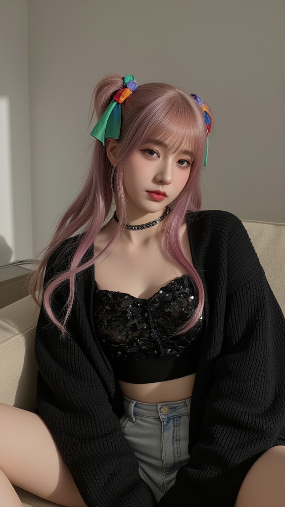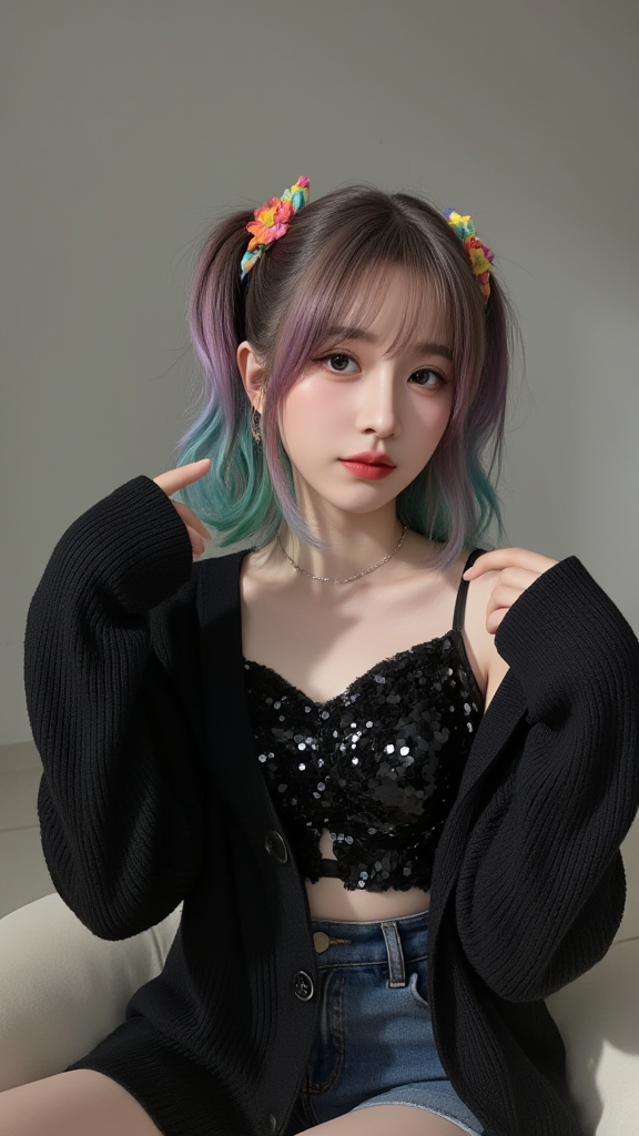 黑色毛衣开衫女孩