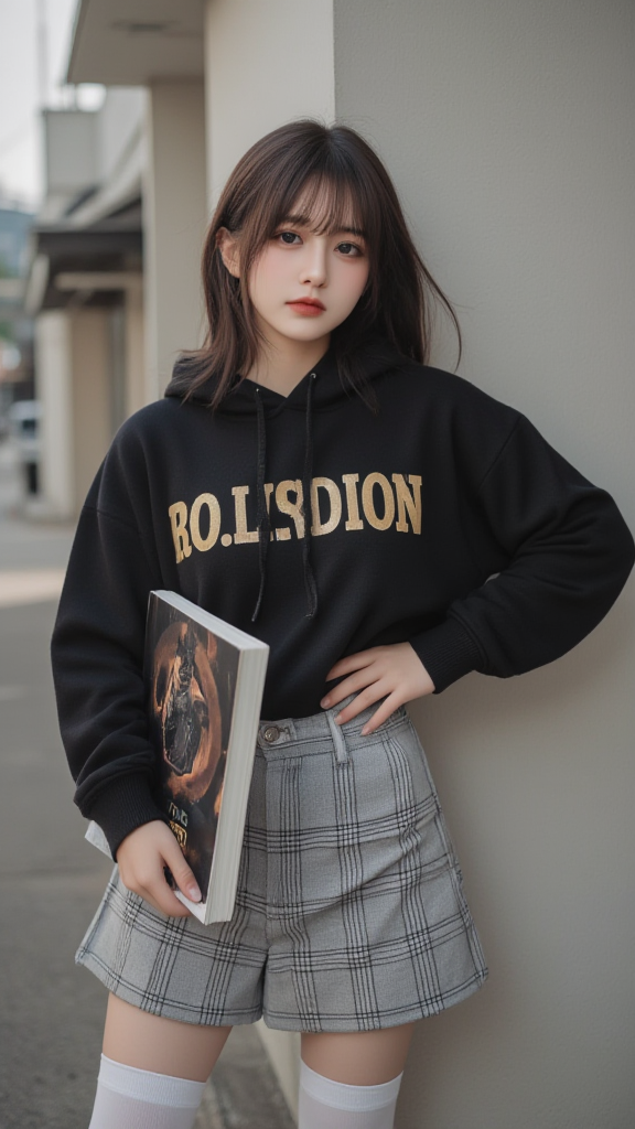 格子短裤女孩