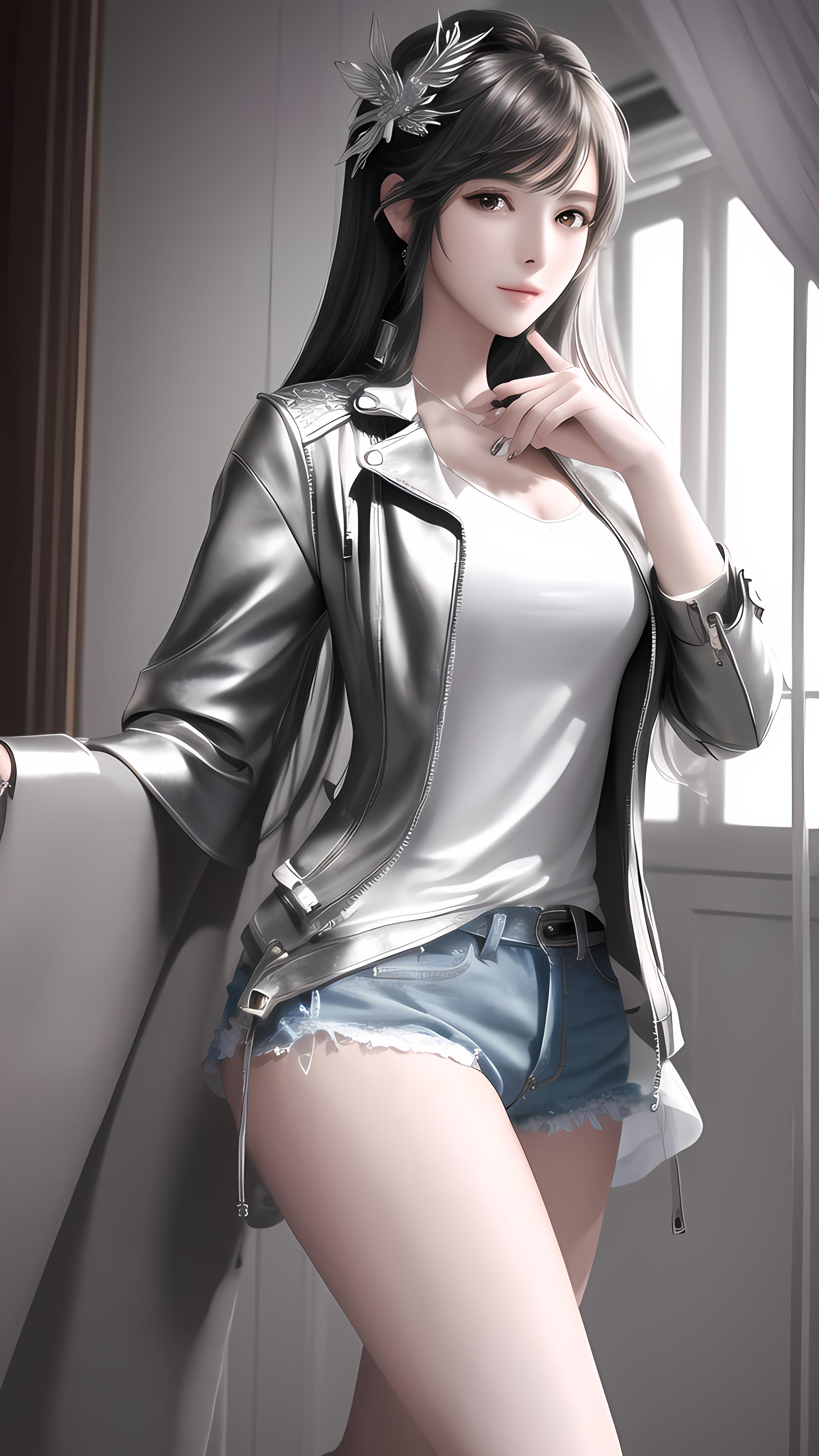 银色短皮裤