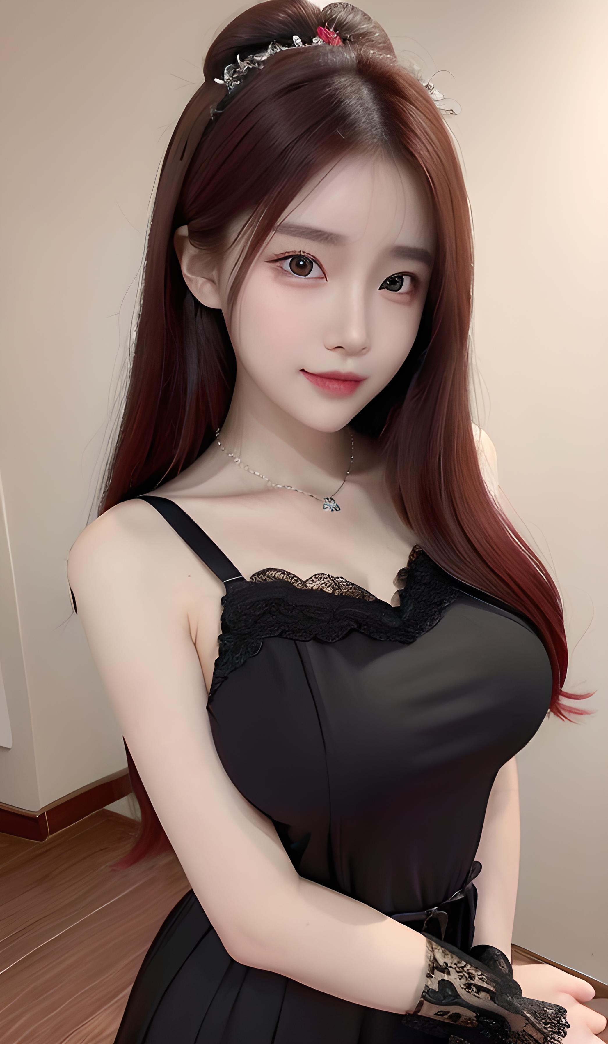超高清,超细节,8k分辨率,超高分别率,最好画质,高细节,一个16岁稚嫩可爱的女孩,彩色清澈眼眸,精致完美的五官最美的大眼睛,长长的睫毛,眼睛甜美有卧蚕,微笑,(红色头发,发型波浪头),头发过肩,斜刘海,头发柔顺,网红脸,项链,仙气飘飘,网红脸,详细刻画的脸,详细刻画的表情,详细刻画的五官,大师杰作,细节拉满,详细刻画的背景,详细刻画的人物,详细刻画的古装发髻,详细刻画的身体,详细刻画的手,详细刻画的衣服,详细刻画的脸,完美的脸,极致的手臂,详细刻画的发丝,面向观者,水润光泽的肌肤,水润的红唇,动态角度,最高精度,精确完美的人体结构,《详细刻画精美淡红色汉服》,((设计服杂的蕾丝汉服,仙气飘飘)),《超级结实超级巨大的丰满胸部》,((风格保守,不暴露,评级:安全))